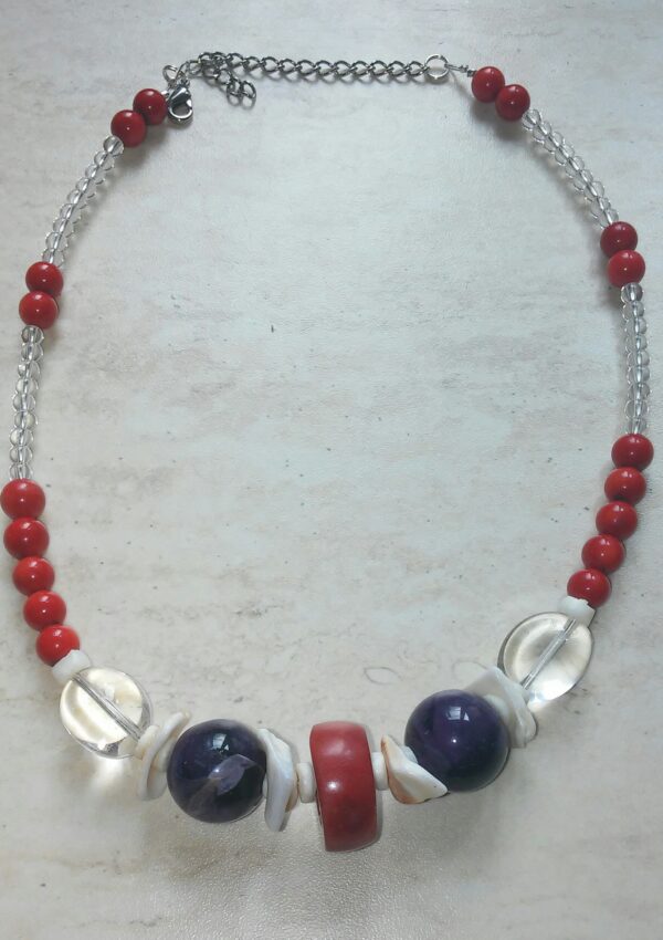 Schmuckkette mit Bergkristall, Amethyst und Koralle, ein Einzelstück!